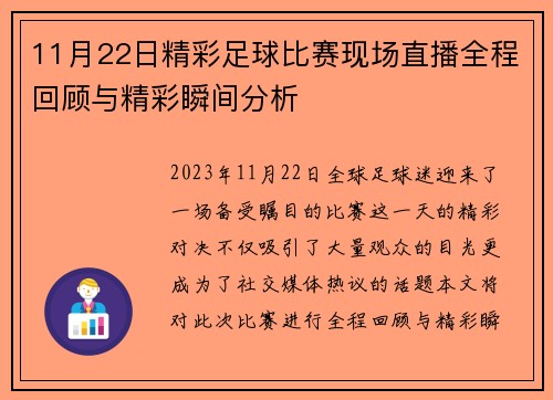 11月22日精彩足球比赛现场直播全程回顾与精彩瞬间分析